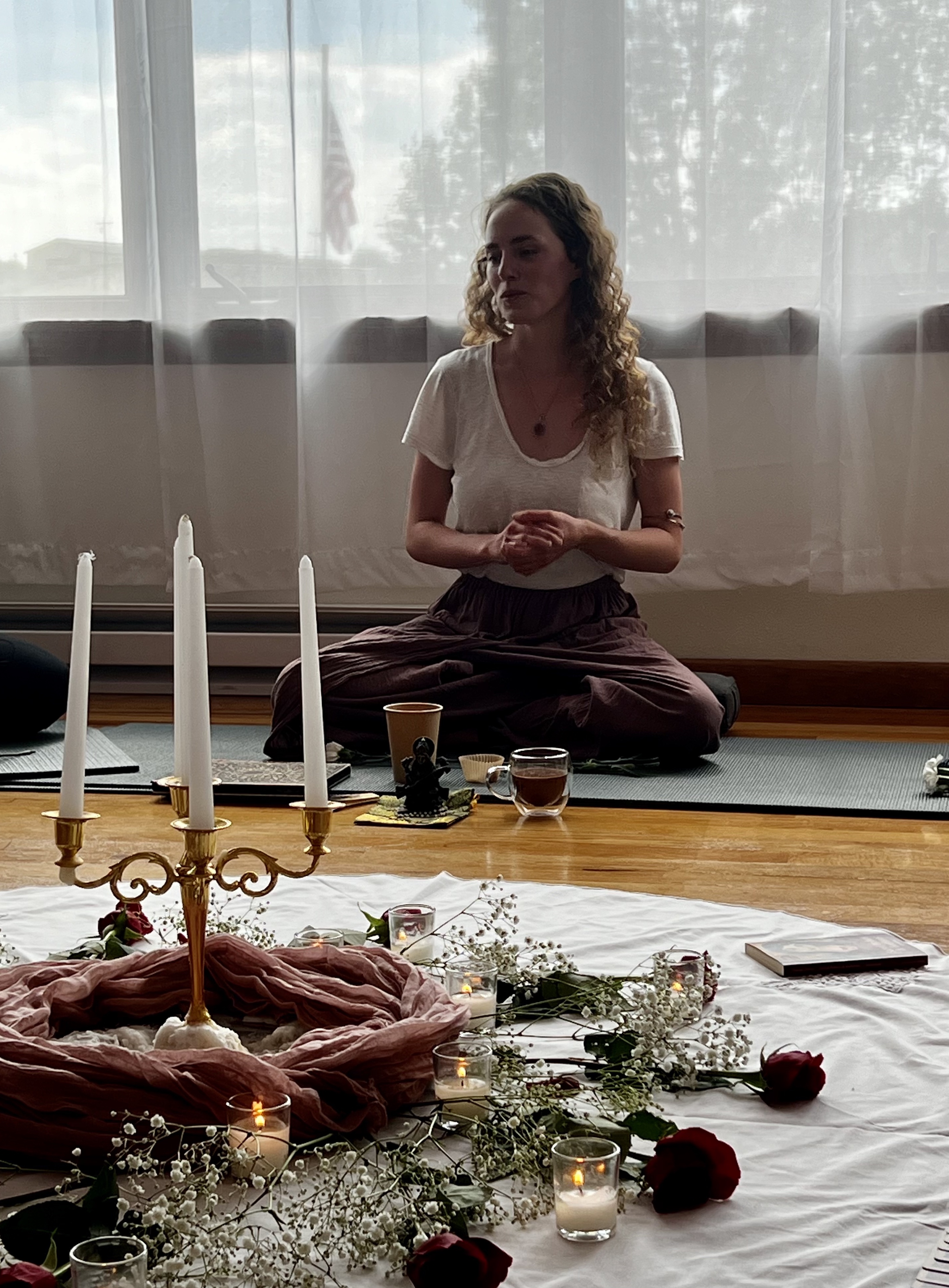 Une invitation à incarner le thème du mois dans ton corps (yoga, mouvement, ceremonies, rituels...)